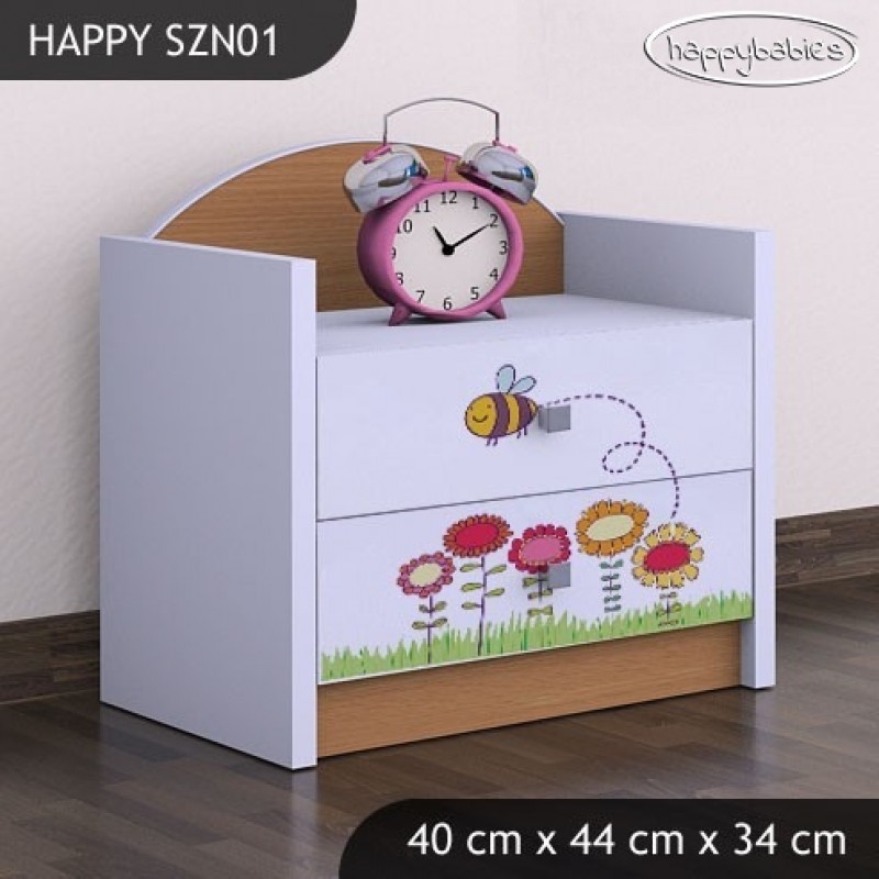 Nočna omarica bo malčku nudila funkcionalen odlagalni prostor za budilko, svetilko, igrače in knjige. Happy babies nočne omarice so kvalitetne in s svojim sodobnim izgledom, prelepimi barvami ter izbranimi motivi popestrijo prav vsako otroško sobico.