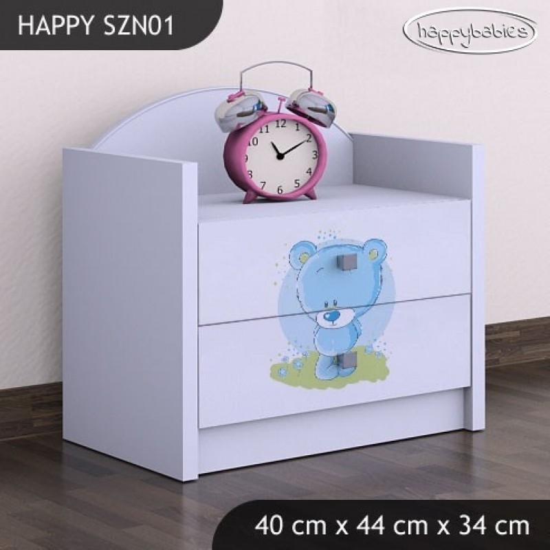 Nočna omarica bo malčku nudila funkcionalen odlagalni prostor za budilko, svetilko, igrače in knjige. Happy babies nočne omarice so kvalitetne in s svojim sodobnim izgledom, prelepimi barvami ter izbranimi motivi popestrijo prav vsako otroško sobico.