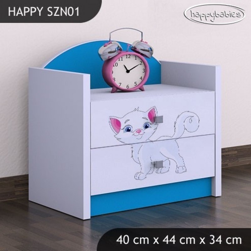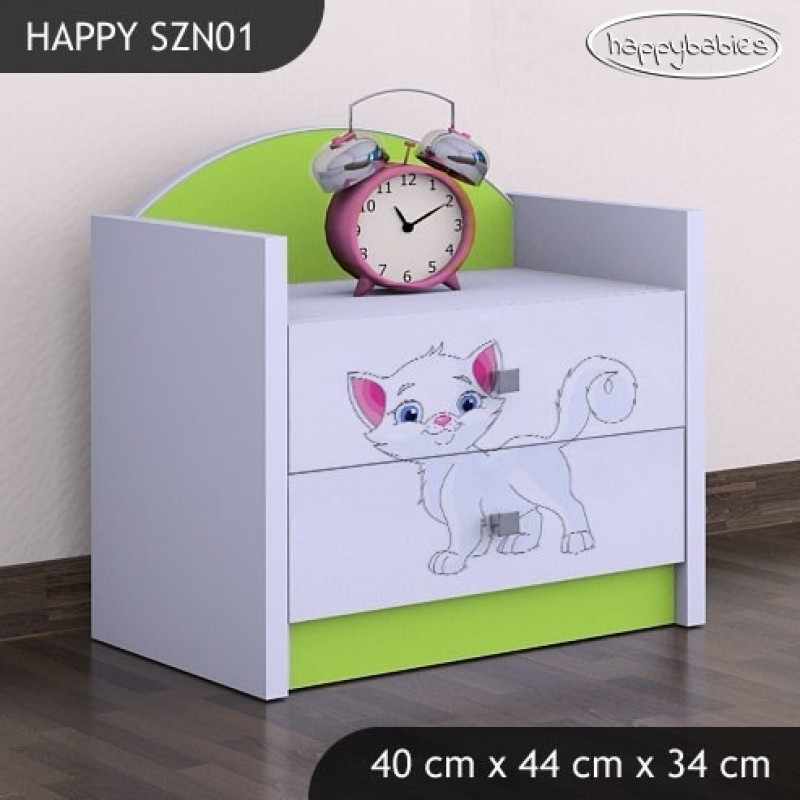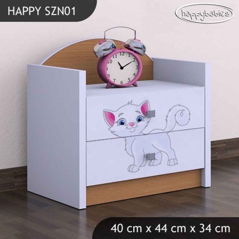 Nočna omarica bo malčku nudila funkcionalen odlagalni prostor za budilko, svetilko, igrače in knjige. Happy babies nočne omarice so kvalitetne in s svojim sodobnim izgledom, prelepimi barvami ter izbranimi motivi popestrijo prav vsako otroško sobico.